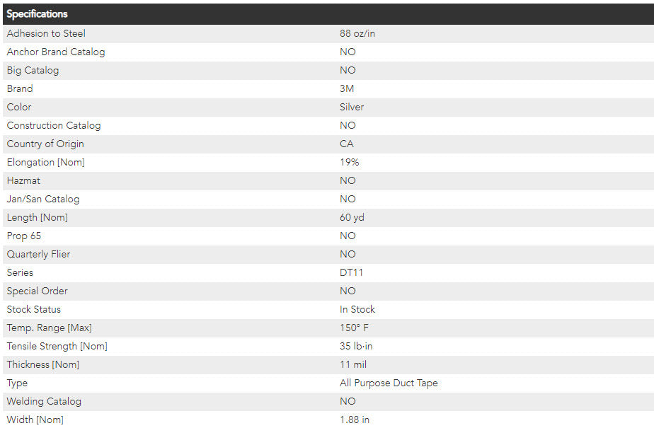 3M DT11 Heavy-Duty Tape, 1.88 in x 60 yd x 11 mil (Silver or Black)