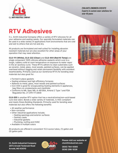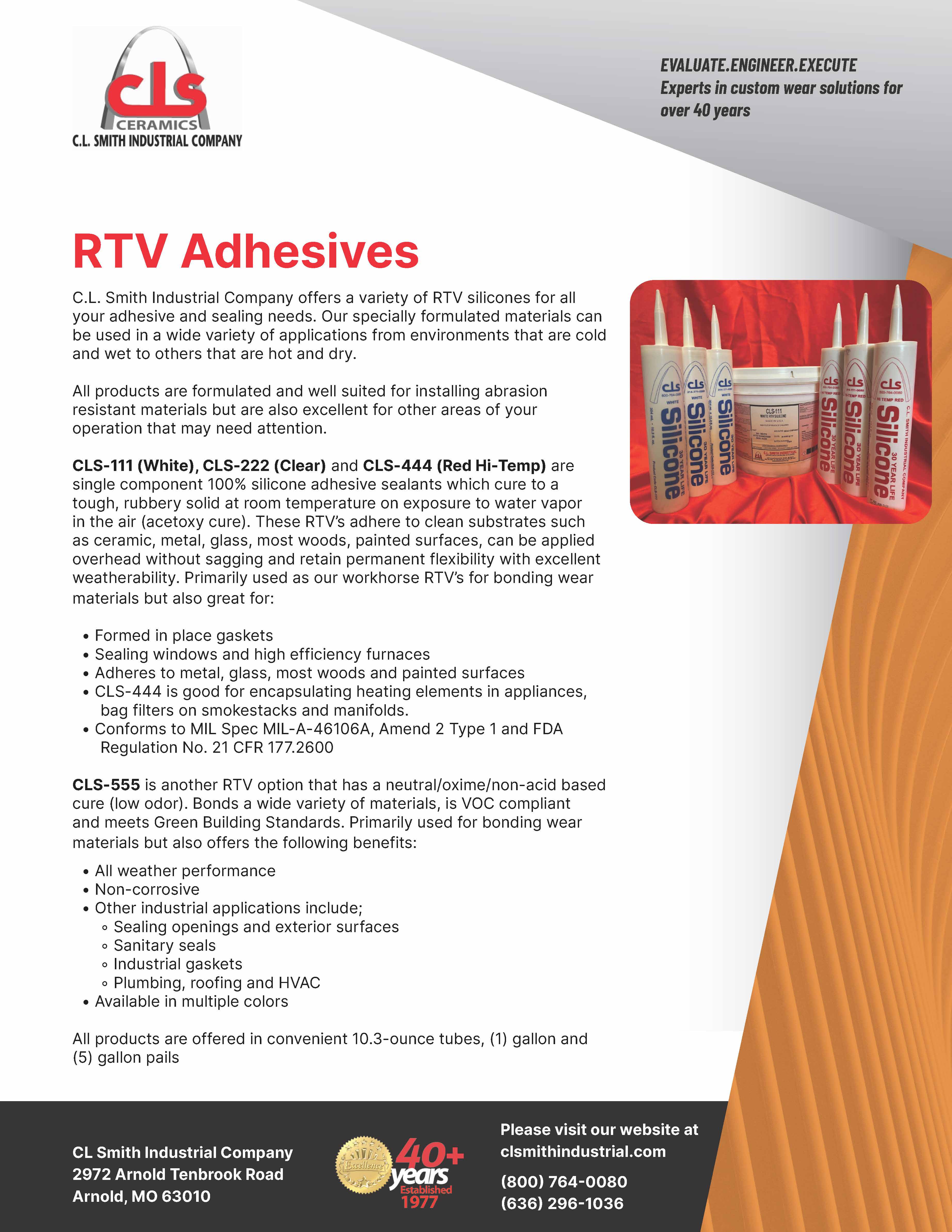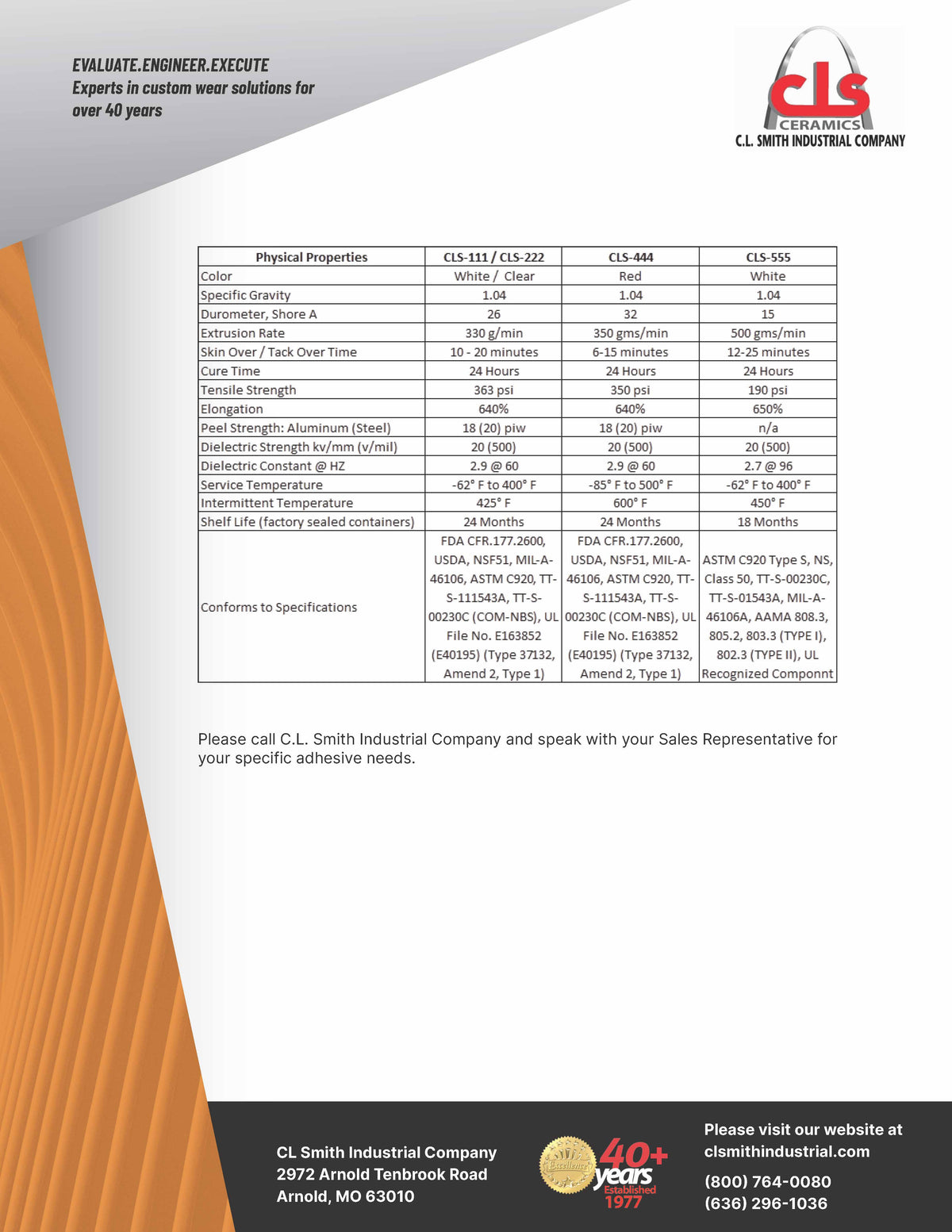 CLS-111 (White) is a single component 100% silicone adhesive sealant which cures to a tough, rubbery solid at room temperature on exposure to water vapor in the air (acetoxy cure). It adheres to clean substrates such as ceramic, metal, glass, most woods, painted surfaces, can be applied overhead without sagging and retain permanent flexibility with excellent weatherability. Also great for: