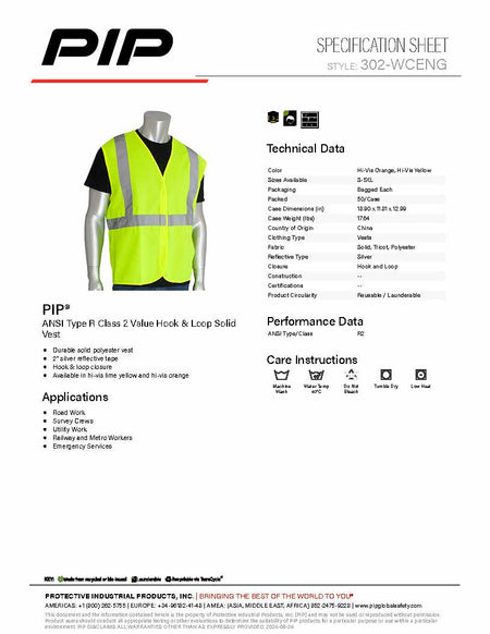 ANSI Type R Class 2 Value Hook & Loop Solid Vest - Orange or Yellow