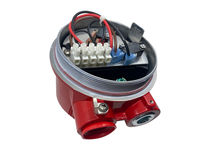 BMRX-200 - 115 VAC - Rotary level indicator power pac featuring a screw-off cover, 3/4" NPT dual conduit entries, DPDT relay contacts, fail-safe protection for power loss, FDA recognized powder coat finish, 1.25" aluminum process connection, certified for hazardous locations C/US Class II