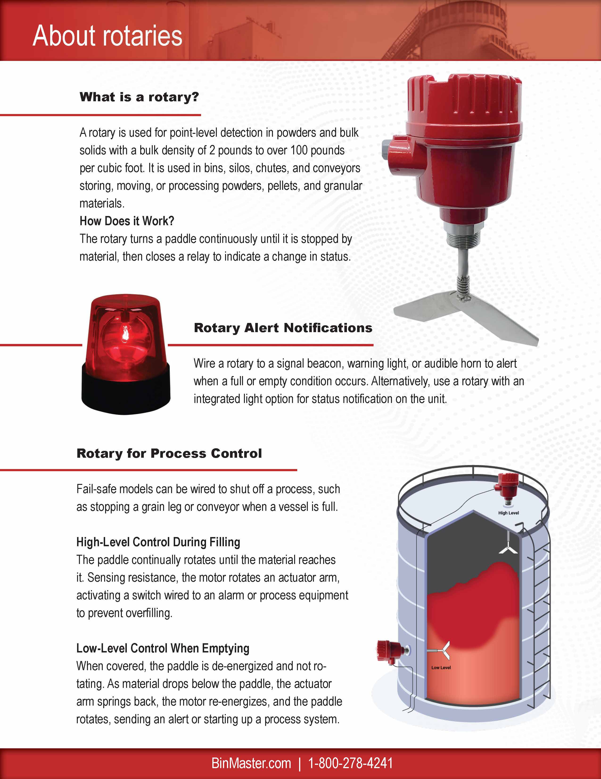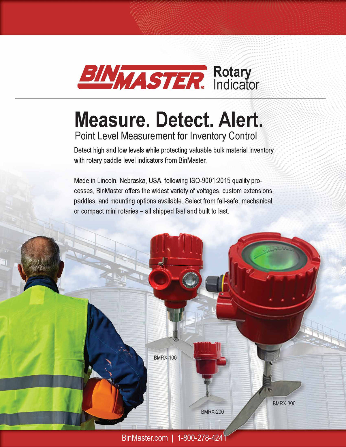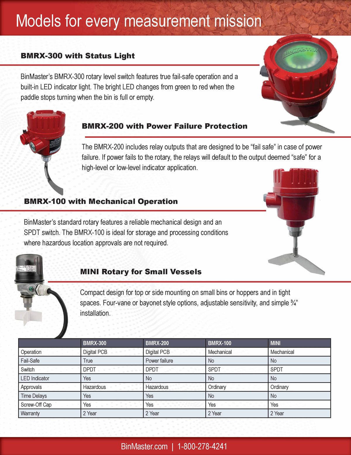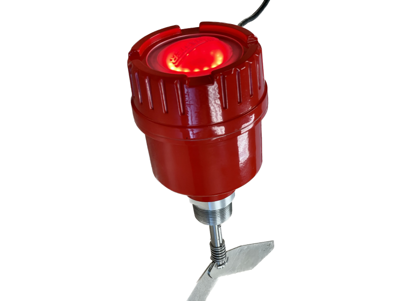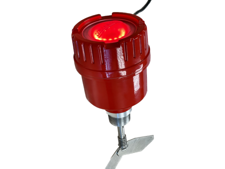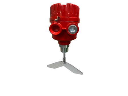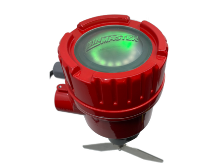 BMRX-300 AC - 115 to 230 VAC - Fail-safe rotary level indicator power pac featuring a two-color light ring for monitoring paddle rotation, paddle covered, and fault conditions, solid-state relay for PLC monitoring, a screw-off cover, 3/4" NPT dual conduit entries, DPDT relay contacts, FDA recognized powder coat finish, 1.25" aluminum process connection, certified for hazardous locations C/US Class II.