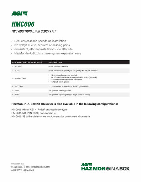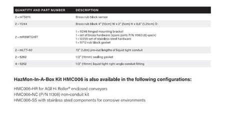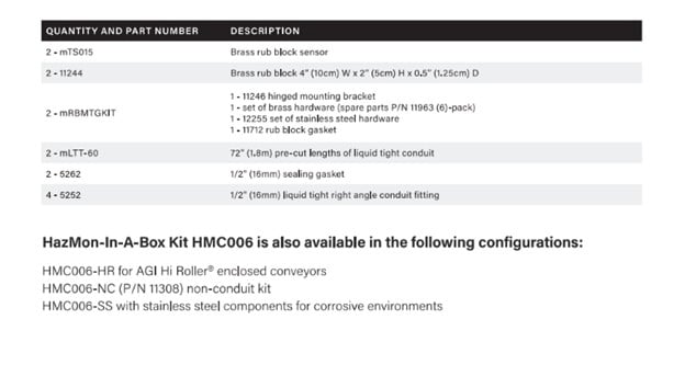 HazMon-In-A-Box Kit HMC006 install 2 additional rub blocks and sensors for conveyor belt misalignment detection