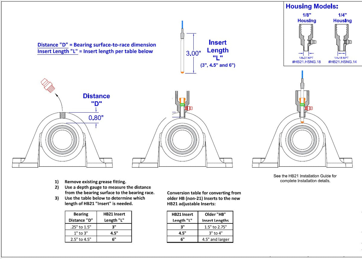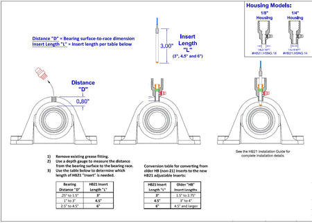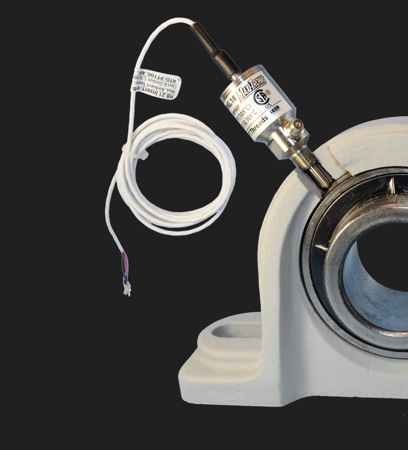 The HB21 Bearing Temperature Sensor screws in to replace an existing grease fitting. Allows continued greasing of the bearing.