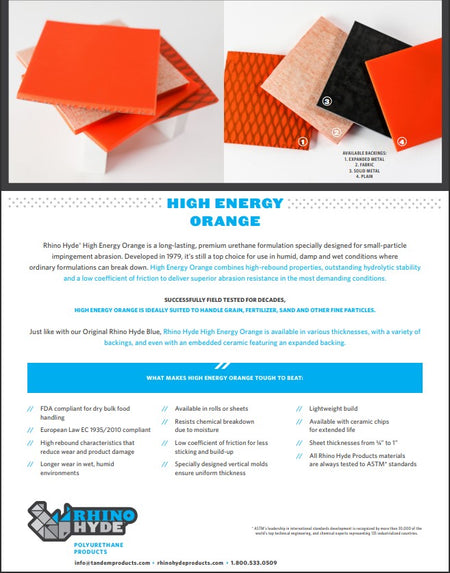 HIGH ENERGY ORANGE URETHANE SHEETS, 4' X 10', 1/4" & 5/16" THICK