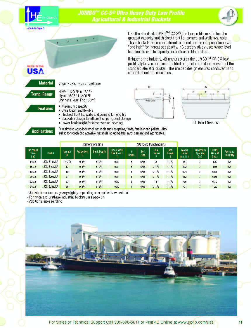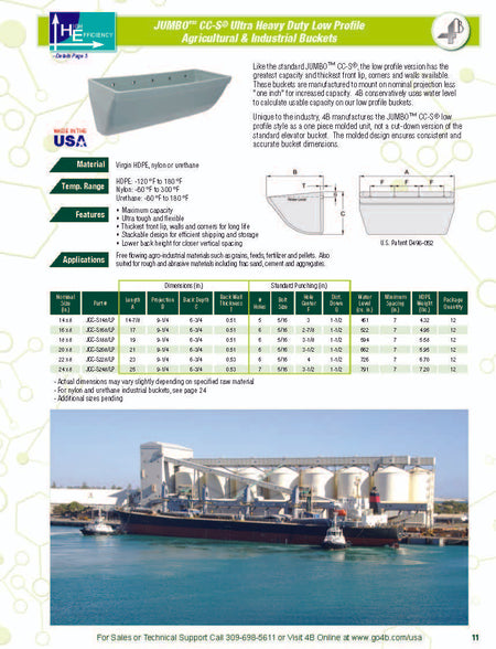 Jumbo - CC Low Profile Style Agricultural Elevator Buckets (HDP)