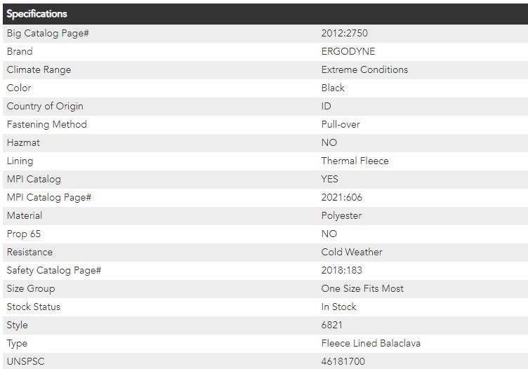 N-Ferno® Balaclava, 6821, Polyester, Fleece Lining, Black