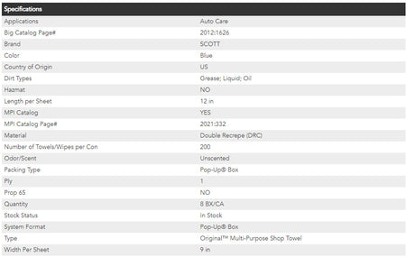 Strong, absorbent towel is great for wiping hands, tools and cleaning up grease, oil, grime and fluids