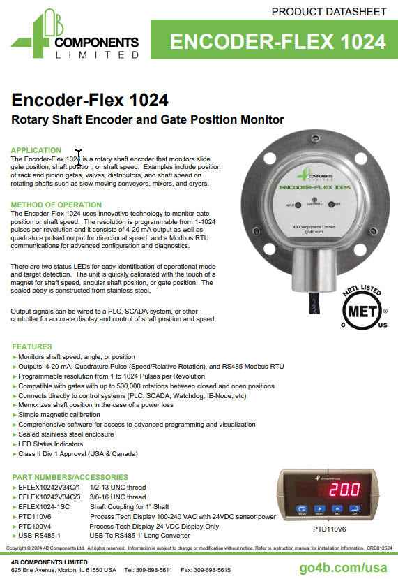 Process Tech Display for use with Encoder-Flex 1024 Rotary Shaft Encoder & Gate Position Monitor