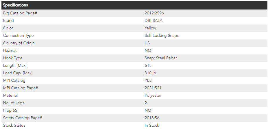 ShockWave2™ 100% Shock Absorbing Lanyard, 6 ft, Self-Locking Snap, 310 lb